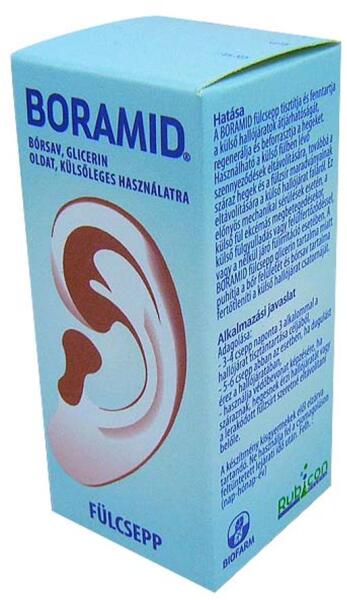 100 ml Boramid fülcsepp tartalmaz: bórsav 0,23 g, fűzfakéreg száraz kivonat 1,18 g, glicerin 83,02 g és tisztított víz.